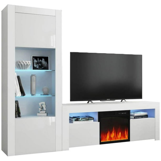The eliot grand entertainment unit includes a fireplace and two open cabinets on either side with a good amount of storage space. All your home furniture needs, at walmart.ca! Installation for the fireplace requires no technician, simply plug into any standard household outlet. The disadvantage of early indoor fire pits was that they generated hazardous or annoying smoke within the house.fire pits. Shop for electric fireplace tv stands at walmart.com.